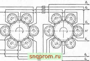Фиг. 7. Схема многоступенчатого многороторного насоса.