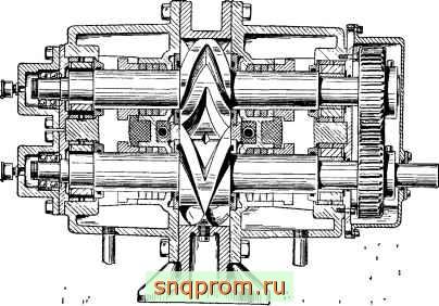 которого нарезано по два шевронных зуба. Роторы в этоМ случае предназначены лишь для транспортирования рабочей жидкости и не имеют непосредственного контакта между зубьями. Привод каждого из роторов осуществляется с помощью специального наружного редуктора.