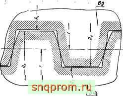 Вместе с тем изготовление шестеренных насосов с шевронным зубом является значительно более сложным и трудоемким процессом, чем изготовление насосов с прямозубыми роторами. Для сокращения утечек жидкости зацепление должно выполняться плотным (беззазорным). Должен быть сведен к минимуму и радиальный зазор между головкой и дном впадины сопряженных зубьев (фиг. 3). (Для этого используется инструмент с укороченным зубом, например в насосе фирмы Brown and Sharpe мод. 537 боковой зазор в зацеплении составляет около 0,03 мм при т = 5,5, а радиальный 0,02 мм.)