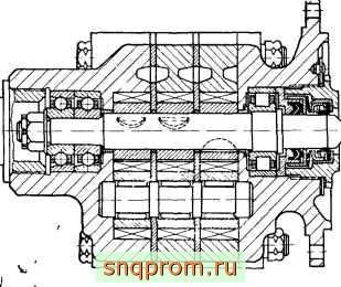 Двухроторные одноступенчатые насосы с прямыми зубьями. Самую обширную группу шестеренных насосов составляют насосы с наружным зацеплением прямозубых роторов. Этот конструктивный принцип представляет основу для большого числа исполнений насосов различных эксплуатационных возможностей. Насосы с прямозубыми роторами характеризуются рядом специфических особенностей, вытекающих из их принадлежности к группе роторных гидронасосов.