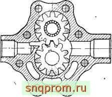 В задних крышках насосов подобной конструктивной компоновки размещаются всасывающие и нагнетательные отверстия. При компоновке деталей насоса с центрированием по расточкам корпуса для уплотнения торцов роторов применяются уплотняющие втулки.