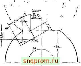 Если представить сечение канализационной канавки в форме условного прямоугольника со стороной С, лежащей в зоне зацепления и стороной представляющей глубину канавки, то искомая площадь проходного сечения при движении жидкости в канавке по направлению к зоне нагнетания представится в виде уравнения: