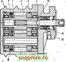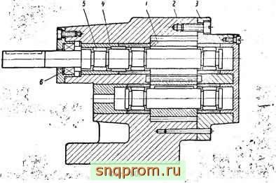 Валы 6, 7 ц 8 изготовляются из легированной стали и вращаются в радиальных игольчатых подшипниках 10. Иголки подшипников находятся в сепараторах. Подшипники имеют лишь по одному наружному кольцу. Внутренней боковой дорожкой для иголок служат закаленные шейки валов.