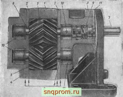 Уплотнение приводного вала 3 производится сдвоенными манжетами 10 из маслостойкой резины Соосность отверстий в корпусе и крышках обеспечивается контрольными штифтами.