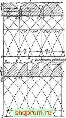 При рассмотрении графика, изображенного на фиг. 13, б, видно, что в течение времени поворота ведущего ротора на угол