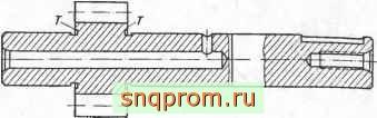 За одно целое с валами роторы (фиг. 40) изготовляются в насосах высокого давления с малым числом зубьев (8-10) большого модуля, когда посадка роторов при помощи паза и шпонки может значительно снизить прочность венца и ослабить вал, несущий большие нагрузки, а также в насосах, где отвод жидкости из отсеченного междузубового пространства осуществляется через специальные отверстия в междузубовых впадинах и валах и при применении специального метода разгрузки шестерен от радиальных усилий (фиг. 38).