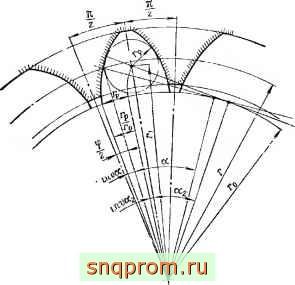 Обозначив длину дуги профиля зуба по окружности радиуса Tj; через Sx, получим, что центральный угол в рад, опирающийся на эту дугу, равен sjfx- Обозначив соответственно для делительной и начальной окружностей эти параметры через т-д, Яд, г, s, получим