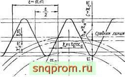Толщина зуба исходного контура и размер впадины по средней линии равны половине шага f/2.