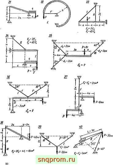 Задачи 41-48. Подобрать размеры площадей f поперечных сечений упругих элементов систем.
