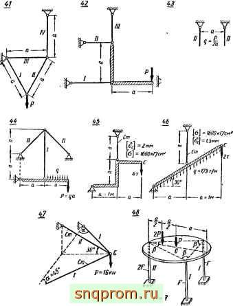 в задачах с буквенными условиями считать допускаемое напряжение [о] одинаковым на растяжение и сжатие для всех упругих элементов системы. Если в условии задачи модуль упругости Е не вздан, то считать его известным и одинаковым для всех стержней. В задачах 45-46 принять для стали £ = 2 -10 кГ/смК
