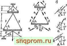 а) е, = = £з = е = 2.10 кГ/см, [о] = 1600 кГ/см (в СИ £ = 1,96-105 Мн/м^\ (о] = 157 Мн/м^; о = 0,4 ж; 6 = 1,2 м; с = 0,4 м; Pi = 45 ; = 60°; Рз = 30°; F, = 12 см; = 14 см; Рз = 16 см (рис. 8);