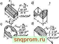 в точке С посередине нижней малой стороны сечения возникают следующие нормальные и касательные напряжения: