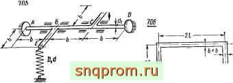 Задача 704. Определить допускаемую силу Р, если для стержня ABC I = 500 мм, Ъ - 750 мм, do = 30 жж, [о| = 1600 кГ/сж, расчетная формула по третьей гипотезе прочности; для пружины D = 50жж, d = 10жж, п = 10, G = 8 - ШкГ/см ;Е = 2-№кГ/см [т] = 4000 кГ/см\