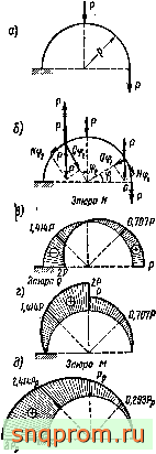 Л' = - 2РSin Фа; Q = 2Рcosф^; М^=Рр(1+ 2sin ф^); N 1 = 0;N , - 1,414Р; , 1 - 2Р; Q, = 2Р;