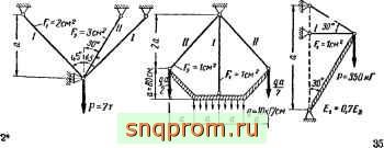 При этой силе напряжения в стержнях системы будут иметь значения: