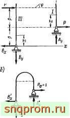 Пример 95. Дано q - интенсивность нагрузки, равномерно распределенной по горизонтали, р, P=2qp, Е, I, (рис 173, а). Определить В - перемещение подвижной опоры. Решение. Из условий статики для заданной системы: