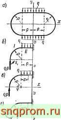 Пример 107. Дано: q, р, Е, J; кольцо тонкостенное и симметричное относительно осей х л у (рис. 195, а)