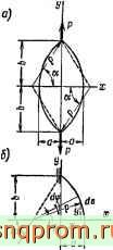 Б. Кольцо из двух дуг окружности радиуса р с центральным углом 2а (рис. 199, а). Так как (рис. 199, б)