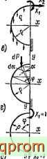 Находим изгибающий момент в произвольном поперечном сечеиий, определяющемся углом ср, от заданной нагрузки q (рис. 202, в).