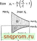 При соотношении давлений в интервале значения имеют разные знаки по толщине стенки трубы.