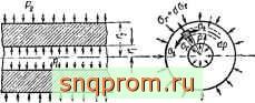 Задача 920. Определить, при каком угле скоса р клинового пуансона предыдущей задачи в среднем сеченни кольца произойдет увеличение радиуса наружной поверхности на величину Д/-2 = 0,2 мм, если / 1=10 см, /-а = 30 см, £ = 10 кГ/cм^ р. = = 0,34, с == 5 см