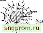 Задача 922. Определить давление Ро между бетонной трубой и абсолютно жестким сердечником, а также проверить прочность трубы, используя пятую гипотезу прочности. Принять: £б=2-10 кГ/см, Ц(5=0,16,