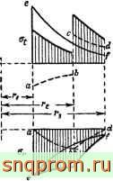 Эпюры о^и о^показаны на рис. 2Н, б, в сплошными линиями ef Находим результирующие напряжения и стенке внутреннего цилиндра: