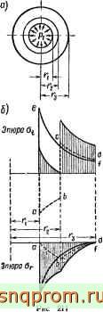 Примерные эпюры о, и о, от давления ро в соединенных цилиндрах показаны на рис. 210 пунктирными линиями аЬ и cd.