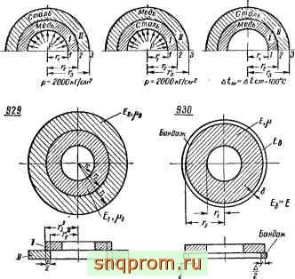 В задачах 926-928 принять: Е„=2Л0 кГ/смР-, =0,3; Оет = 12,5.10- ; £ =Ы0 кГ/см?-, (а„ =0,34; = 16,5-10- ; Г1=10 см; Г2=20 см; Гз=40 см.