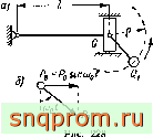 Пример 128. К грузу Q= 100 кГ, укрепленному иа конце призматического стержня длиной 1=1 м и площадью поперечного сечения F=] см, подвешен груз Q,=2 кГ, который вращается иа плече р=8 ен, делая /г-=2400 об/тин (рис. 228,а). Модуль продольной упругости материала стержня £-=2 -10 кГ/см.