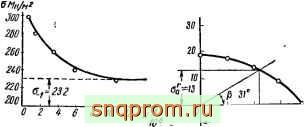 Проводя касательную к правой концевой части кривой, на оси ординат устанавливаем значение условного предела выносливости 232 Мн/мК