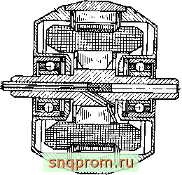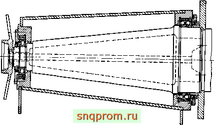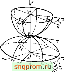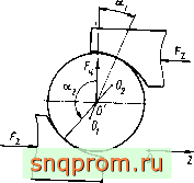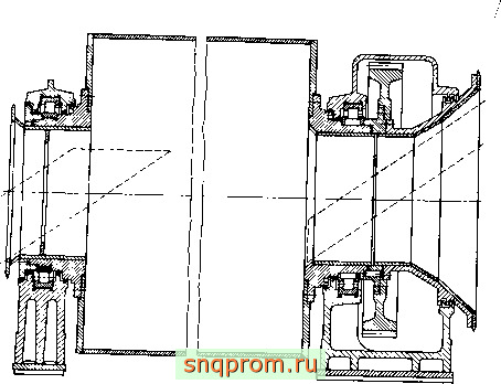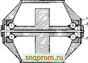 1 [ 2 ] 3 4 5 ... 14   наружными уменьшается радиальный зазор. Сдвоенные шариковые подшипники имеют осевой зазор 250...4000 мкм. Смазывание осуществляют погружением в ванну с жидким смазочным материалом. Чтобы из подшипников не вытекало масло, а окалина и охлаждающая жидкость не проникали в подшипники, предусмотрено лабиринтное уплотнение. На рис. 1.10 представлены подшипники промывного барабана. Масса барабана 60 т, диаметр 2100 мм, длина 7,5 м, мощность привода 100 кВт, частота вращения 9 мин . Барабан опирается на пустотелые цапфы, через которые загружают и выгружают сыпучий материал. Из-за большого расстояния между подшипниками было бы целесообразно применять самоустанавливающиеся роликовые подшипники. Однако они имели бы слишком большие габариты и чрезмерную долговечность, поэтому применяют цилиндрические роликовые подшипники с закругленным меридианом роликов. Осевая нагрузка воспринимается фасонными кольцами со стороны фиксирующего подшипника. На рис. 1.11 изображена опора оптического телескопа, длина которого 8 м, масса 10 т. Диаметр зеркала 1 м. Вследствие малой частоты вращения вильчатой оси (1 оборот за 24 ч) момшт сопротивления ее вращению должен быть прежде всего постоянным и достаточно малым. Вилка должна быть ориентирована очень точно и жестко. В качестве фиксирующей опоры служит двухрядный радиально-упорный прецизионный шариковый подшипник с разъемным наружным кольцом. Подшипник имеет размеры 600X730X98 мм. Расстояние между обеими половинами наружного кольца должно быть выбрайо так, чтобы обеспечить усилие натяга, равное 35 кН. Плавающая опора выполнена в виде цилиндрического роликового подшипника. Несмотря на коническую форму вильчатой оси, ее прогиб настолько велик, что может приводить к увеличению трения в двухрядном подшипнике. Поэтому роликовый подшипник снабжен двумя эксцентричными кольцами, которые при монтаже вращают так, чтобы ликвидировать прогиб оси в месте расположения шарикового подшипника. Кроме того, для самоустановки меридиан дорожки внутреннего кольца роликового подшипника имеет форму дуги окружности с большим радиусом. На рис. 1.12 представлена симметричная конструкция гиромотора с одним двигателем и составным маховиком. Такие констукции применяют в приборах, где требуются малые значения кинетических моментов, например, в интегрирующих и дифференцирующих поплавковых гиро-приборах и в гирокомпасах. Приведенные примеры использования ПУ дают представление о разнообразии конструктивного исполнения, условий работы и требований к характеристикам. Для одних ПУ важна высокая долговечность, для других - высокая жесткость, точность вращения, стабильность момента сопротивления вращению или низкий уровень вибрации. Расчет характеристик ПУ требует системного подхода. Но возможна единая расчетная схема ПУ. Действительно, во всех примерах ПУ представляет собой ротор, опирающийся на один, два или несколько подшипников, установленных в  РИС. 1.12 корпусе. Вращаться может и корпус вокруг неподвижной оси, а у каждого подщипника вращающимся может быть как внутреннее, так и наружное кольцо, однако суть принципиальной расчетной схемы не меняется. Но даже для исследования такой простейщей расчетной схемы необходимо использовать уравнения теории упругости, динамики систем твердых тел, теории трения, смазки и изнашиван