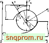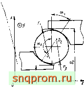 Введем правую неподвижную систему координат Oxyz (рис. 3.1) й рассмотрим сечение я-го подшипника плоскостью Оху (ось Oz направлена вдоль оси симметрии колец). Введем также координаты z, г, ф (угол ф отсчитываем в направлении кратчайшего поворота от Од: к Ои). Пронумеруем кольца подшипников: т = I соответствует наружному, ml=2 - внутреннему кольцу; число шариков в подшипнике обозначим . Воспользуемся общепринятыми обозначениями для геометрических параметров подшипника: Гщ - радиус кривизны поперечного сечения желоба т-го кольца; Z), (dj - диаметр по дну желоба наружного (внутреннего) кольца; Dy, - диаметр тела качения; ащ - угол контакта, положительное направление отсчета которого - от вертикали против часовой стрелки (на рис. 3.1 а, < 0). Так, например, для шарика, который не вращается вокруг оси Ог и центр которого лежит на отрезке Оу О2, 2 + f - Наряду с этими обозначениями при расчете будем пользоваться введенным В.Ф. Журавлевым семимерным вектором геометрических параметров Pi (/ = 1,..., 7), связь которого с общепринятыми обозначениями такова Рт =г„ рз =Z),/2, Р4 = dij2, Рт = D; Р4 + m - проекция вектора С>0, (см. рис. 3.1) на ось Oz. Эти обозначения удобны при рассмотрении подшипника с отклонениями геометрических параметров, поскольку позволя ют унифицировать параметры и сократить запись сложных выражений Таким образом, геометрия колец подшипника в сечении ф = const характе ризуется шестимерным вектором р= (pi,..., Ре)- Вследствие погрешнос тей изготовления кольца подшипника и шарики имеют геометрию, несколь ко отличающуюся от номинальной. Следовательно, вектор геометрии зависит от угла ф: Р = V (ф). Обозначим вектор номинальной геометрии через р = (р?,..., рбУ, Р? - номинальный диаметр шарика. Тогда погрешности изготовления колец, которые в дальнейшем считаем незначительными, можно описать вектором отклонений