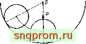 Заметим, что применение формулы (3.7) связано с определенным противоречием, свойственным решению Герца. Проведем мысленный эксперимент. Пусть шарик контактирует с тороидальным желобом, сечение которого изображено на рис. 3.3. Если упругое сближение равно 5, то сила взаимодействия, вычисляемая по формуле Герца, Р = К8, где К, согласно (3.7), зависит от радиусов кривизны и упругих постоянных материалов шарика и желоба. Очевидно, что упругие силы потенциальны (отсутствует диссипация в материале), а потенциал является в данном случае функцией положения центра шарика. Пусть центр шарика перемещается вдоль радиуса желоба от положения, в котором происходит первоначальное его касание с желобом, до точки, в которой сближение равно 5. Тогда
