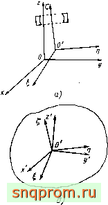 Введем две правоориентированные системы координат: К = Oxyz - неподвижная, А^= 0tjf -связанная с кольцом (рис. 3.5, а). Координаты точки в двух системах связаны следующими соотношениями: