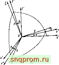 1) поворот вокруг оси О'х ( на угол а, при котором оси О'у и Oz совмещаются с осями О'у и Oz , причем ось О'у попадает в плоскость 0%г\; заметим, что в результате этого поворота ось О'у оказывается перпендикулярной осям Of и Oz ;