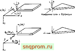 Фиг. 11.2. Плоский элемент под действием мембранных и изгибающих счл.