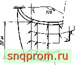 Первый пример посвящен расчету оболочки арочной плотины. Для расчета взята простая геометрическая конфигурация, показанная на фиг. 11,6, что позволило применить различные численные методы и провести сравнение с результатами экспериментов на моделях. Благодаря цилиндрической форме оболочки использовались прямоугольные элементы, хотя линия жесткого основания аппроксимировалась при этом довольно грубо.
