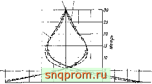 Фиг. 11.8. Арочиая плотина. Напряжения в вертикальном направлении на центральной линии.