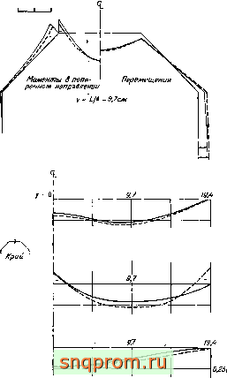 Фиг, 11,16. Складчатая конструкция из пластин [23]. Моменты и перемещения в центральном сечении.