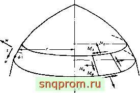Фиг. 11.14. Свод, изображенный на фиг. 11.13. Л, -момеит в поперечном направлении; Alj -момент в продольном навравленин в центральном сечении; Мц -крутящей момент Иа опоре.
