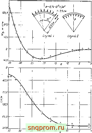 в радиальном направлении, к-радиальное перемещение, JW -меридиональный момент, £=6,74 10 Н/м^ v= 0,3-