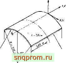 Цилиндрический свод. Это пример применения метода к расчету оболочки, для которой существенны изгибные эффекты, так как опоры препятствуют перемещению двух краев (фнг, 14.10).