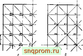 Легко показать, что уравнения, полученные в результате объединения выраженных в явном внде жесткостей треугольных элементов для регулярных сеток (фиг. 15.3,о), совпадают с уравнениями, полученными известными конечно-разностными методами [10].- Очевидно, что и решения, полученные этими ме-