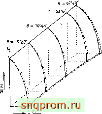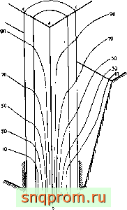 Фнг. 15.8. Установившееся распределение температур в осесимметричном сосуде высокого давления.