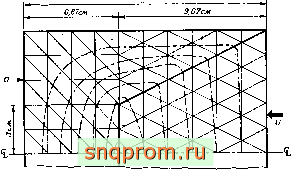Фиг. 15.7. Фильтрация под плотиной в сильно неоднородном н искривленном