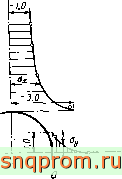 Распределение напряжений около подкрепленного отверстия (фиг. 4.7). В стальных сосудах высокого давления или на несущих поверхностях самолетных конструкций часто приходится делать различные отверстия. Входящий трубопровод сам несколько подкрепляет отверстие, и, кроме того, для уменьшения напряжений, возникающих из-за эффектов концентрации, стенка вблизи отверстий обычно утолщается.