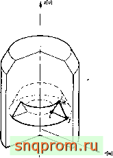 Исследование распределения напряжений в телах вращения (осесимметричных телах) при осесимметричном нагружении представляет большой практический интерес. Поскольку эти задачи тоже двумерные [I, 2], с математической точки зрения они аналогичны задачам о плоском напряженном и плоском деформированном состояниях. Вследствие симметрии деформированное, а следовательно, н напряженное состояния в любом сеченни по оси симметрии тела полностью определяются двумя компонентами перемещений. Такое сечение показано на фиг. 5.1. Если г и 2 -радиальная и осевая, координаты точки, а и о - соответствующие перемещения, легко заметить, что перемещения внутри показанного на рисунке треугольного элемента ijm могут быть описаны с помощью тех же самых функций перемещения, которые использовались в гл. 4.