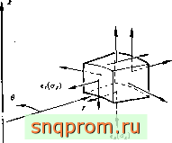 Как уже упоминалось, в осесимметричном случае необходимо рассматривать четыре компоненты деформации. Это фактически все компоненты, которые могут быть отличны от нуля при осесимметричной деформации. Они и соответствующие им напряжения схематически изображены на фиг. 5.2.