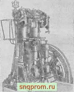 В 1902 г. при конструировании двигателя мощностьюбО л. с. завод отказался от копструкции двигателей с крейцкопфом, остановившись на конструкции типа Б без крейцкопфа (фиг. 2). Это позволило уменьшить высоту двигателей, их вес и стоимость.